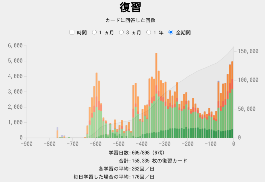 I first found out about Anki and the spaced repetition idea around March of 2020. To be honest though, I was still really toying around with the idea of learning Japanese, and I didn’t have any real sense of the amount of commitment it would require of me for the next 2 years. I picked up the 2k/6k Core deck in May of 2020, and began to regularly do repetitions. Further, I’d just entered summer break off my junior year of high school, and I had a lot of time to sink into this stuff. I started off doing ~100 cards a day for the first few weeks, but I couldn’t tell you how many new cards I was doing at first. I do remember quite clearly trying to write every character as I went, but I quickly gave up on it after I realized how much time that would take up.